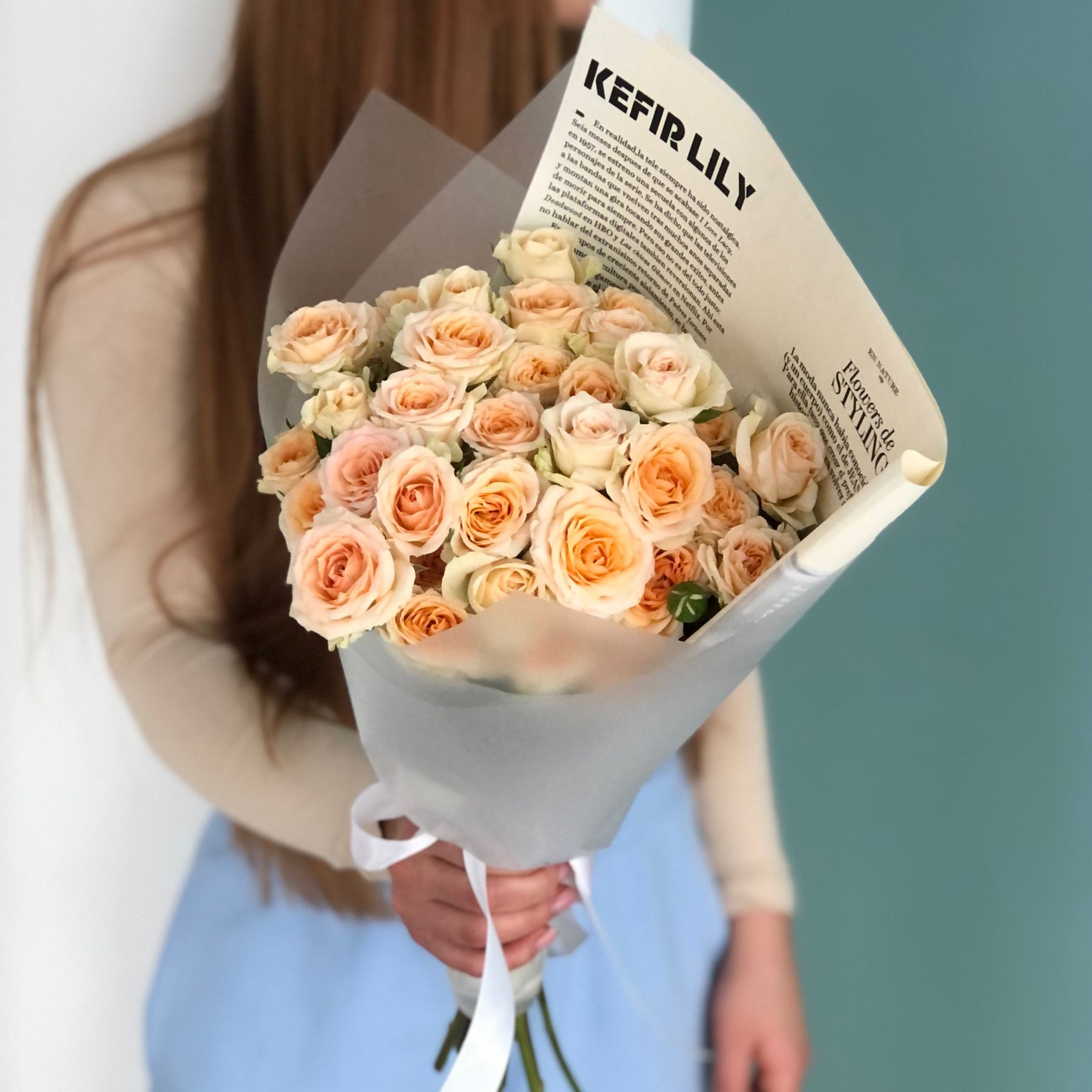 Кустовая персиковая роза- 9 веток